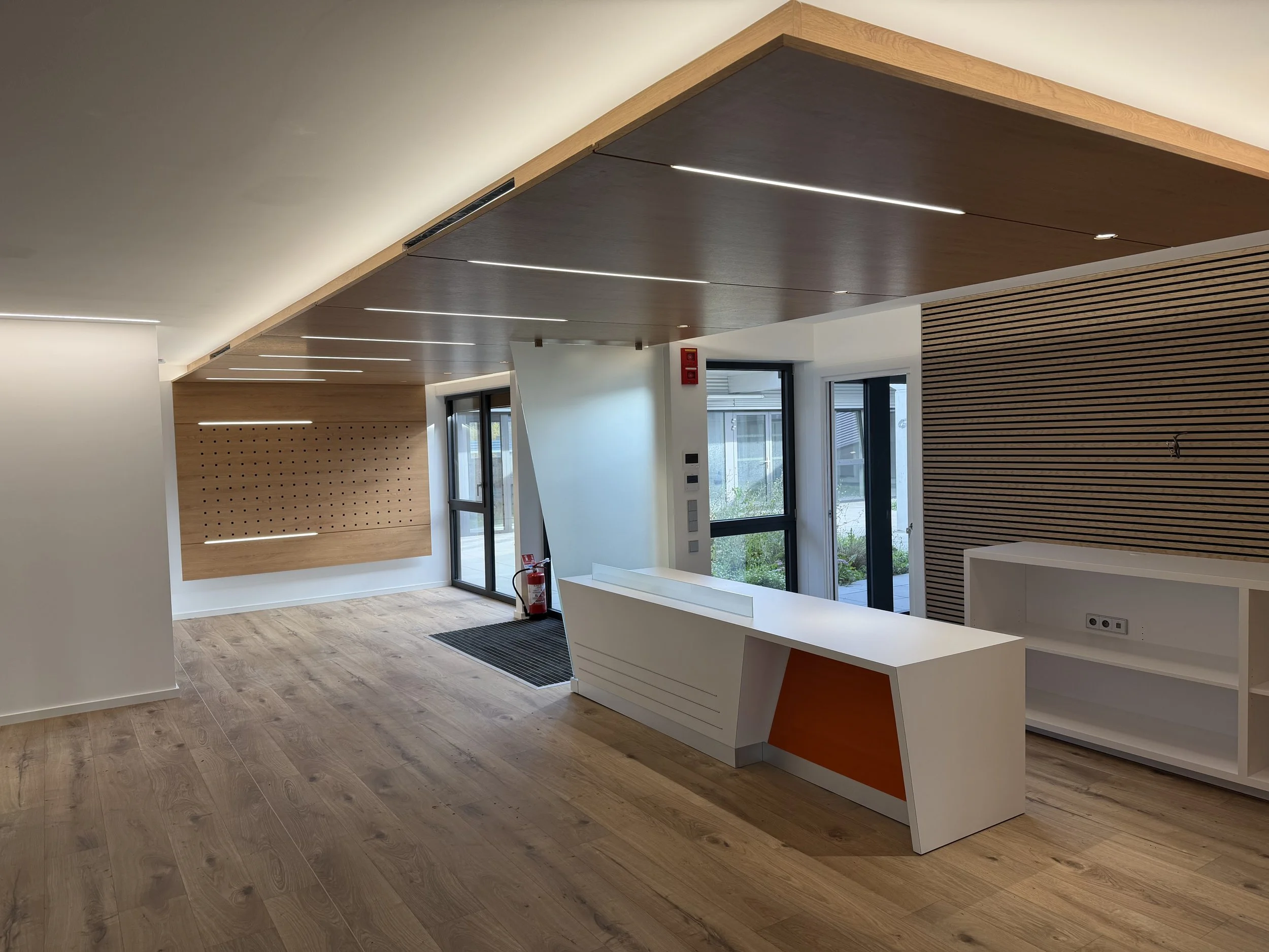 Aménagement d’un plateau de bureaux destiné à une activité d’expertise comptable sur 460 m2, dans un bâtiment existant.